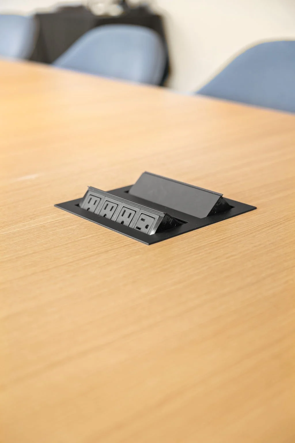 Beneath the clean, uninterrupted surface lies extensive structural planning. Fine Line modeled the table in 3D prior to fabrication, integrating all cord chases, cavity pathways, and mechanical considerations directly into the CNC files.